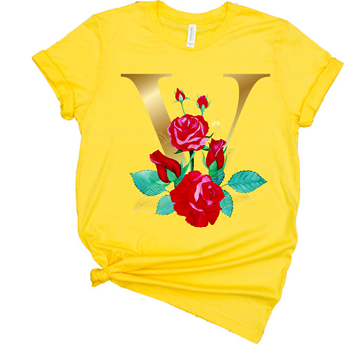 Tricou Femei, Litere cu Flori, V